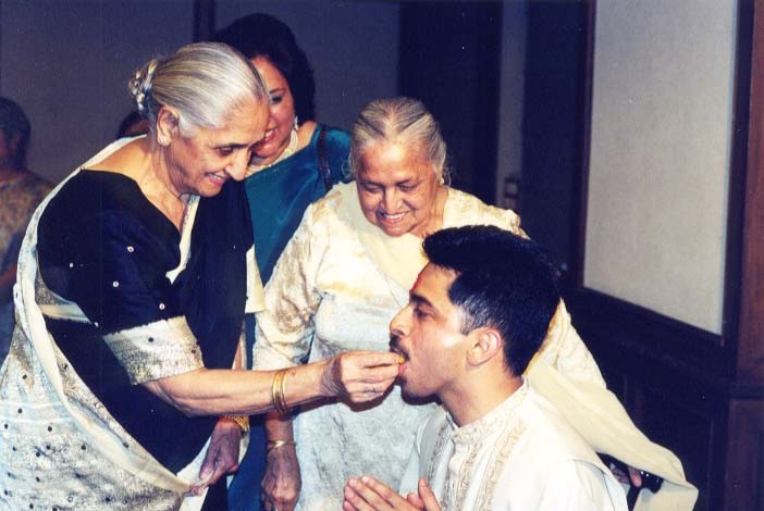 The couple share a joke Anika gives shagan The couple with the bride's best friend. Grandma gives her blessing. Uncles's shagan Aunt's shagan Another uncle's shagan The bride being escorted by the brother The shy look Yes! now I get her room, stereo.. The bride's family Now they all fit in the frame My family The brother's dance Kanika and Me (a personal favorite) Shokee and family Bride's Dad Bride's Mom Kanika with uncle Gagi my Mom with cousin Sonu Sangeet (4.10.2000)MEHNDI (4.11.2000)